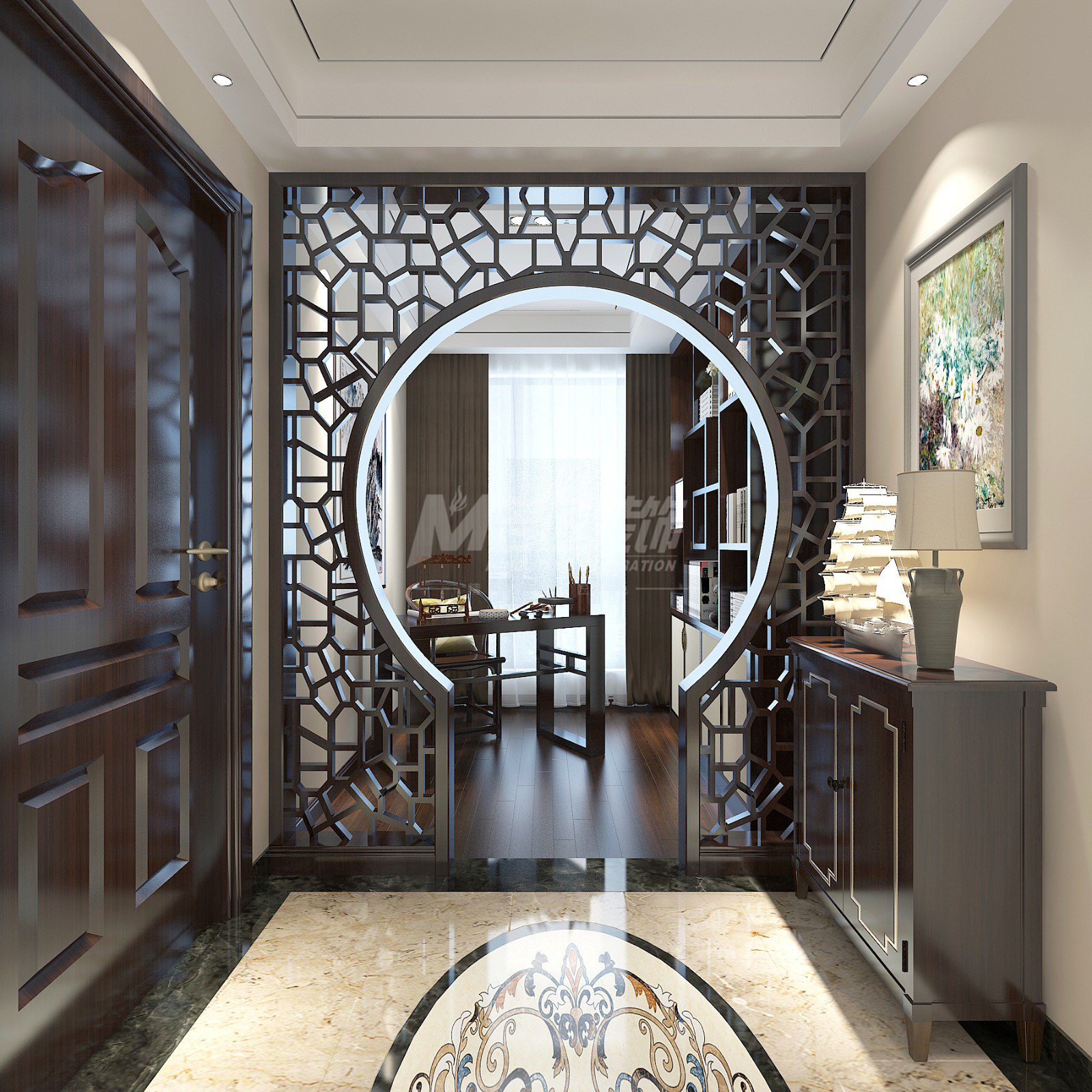 舟山山海灣三居新中式風格裝修效果圖