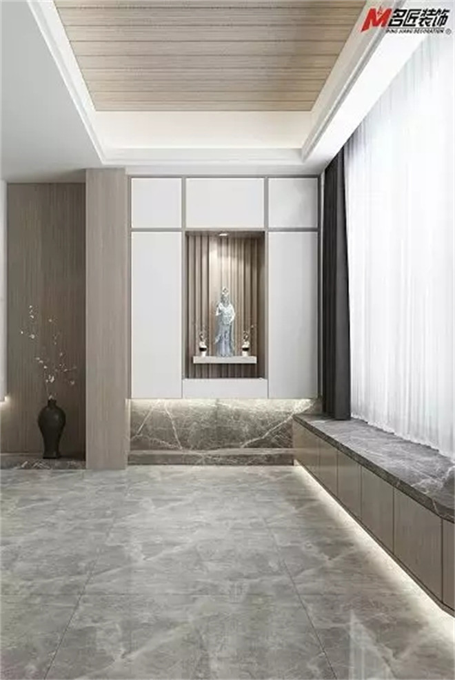 此案例以白色、灰色和原木色系搭配為主線,而奠定了簡約之調的灰白讓人心生向往,墻上的精致擺件的映襯,仿佛是對生活的簡約及情感信仰的表達。在細節(jié)之處出賣了主人雅致品味和淡雅生活方式。