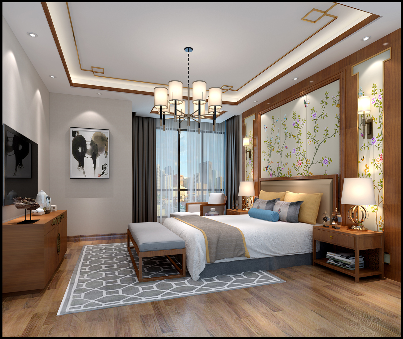 上饒合生君景灣三居新中式風(fēng)格裝修效果圖