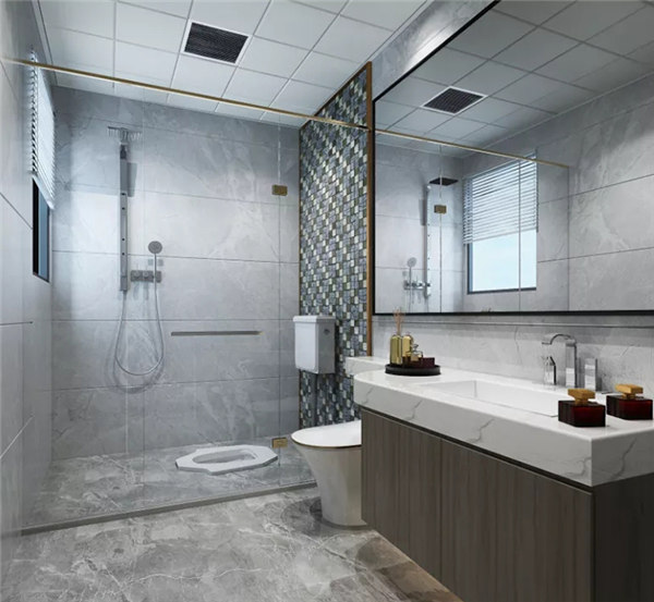 衛(wèi)生間干濕分離,有效避免水汽對柜體的傷害;洗手臺下設計柜體增加收納功能。