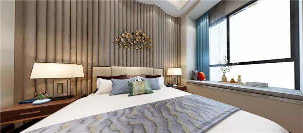 臥室色彩比較沉穩(wěn)低調,在用色上偏向舒緩、雅致,整體簡潔而不失優(yōu)雅。新中式燈具色彩鮮明,光線柔和,給人一種溫馨、寧靜的感覺。