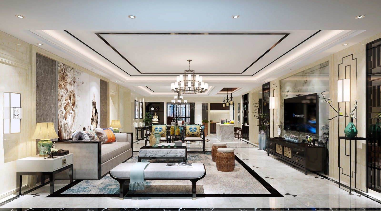 廣州101-200平米新中式風格家裝設(shè)計效果圖