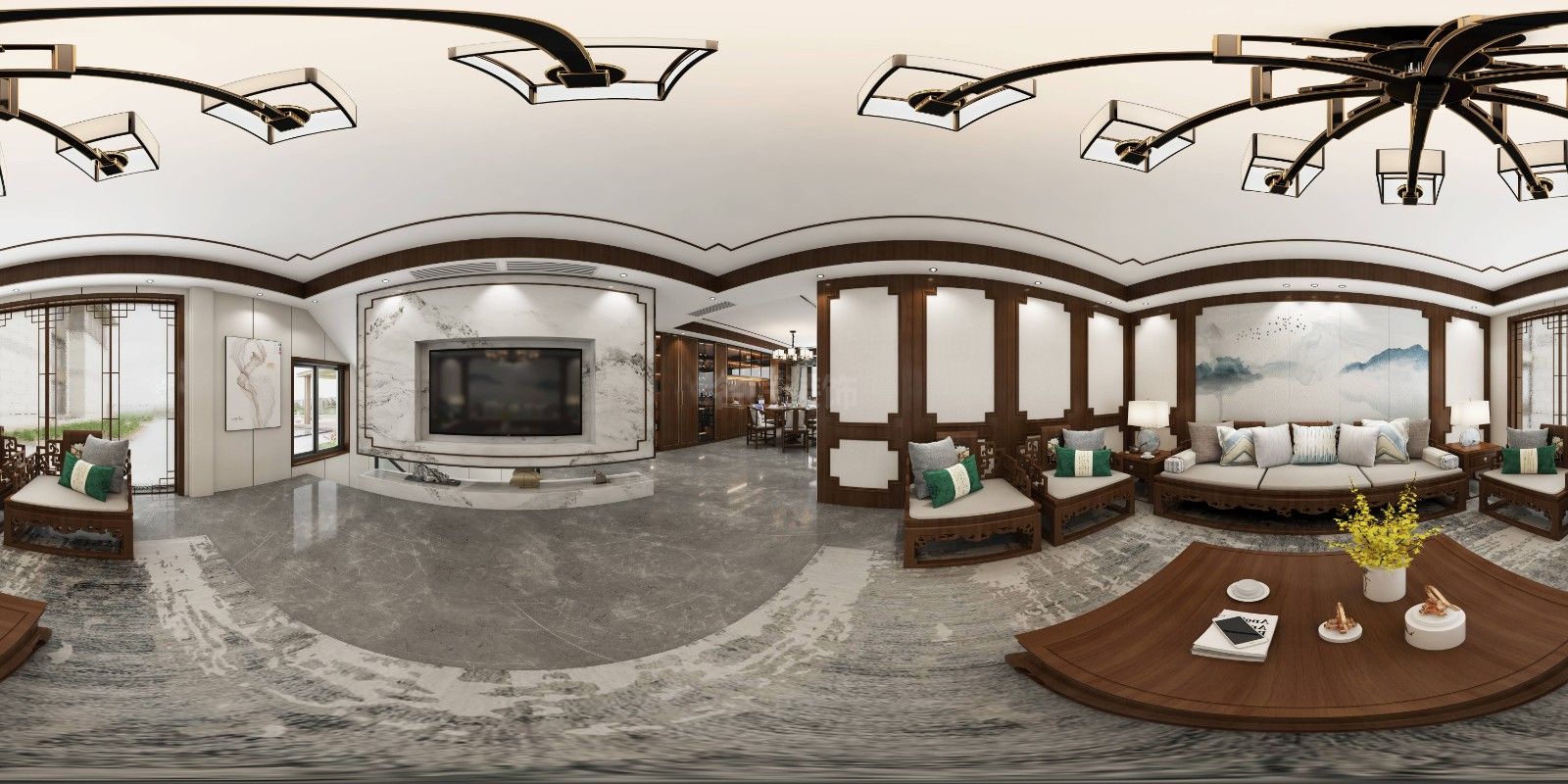 涼山彝族自治州萬科別墅新中式風格裝修效果圖