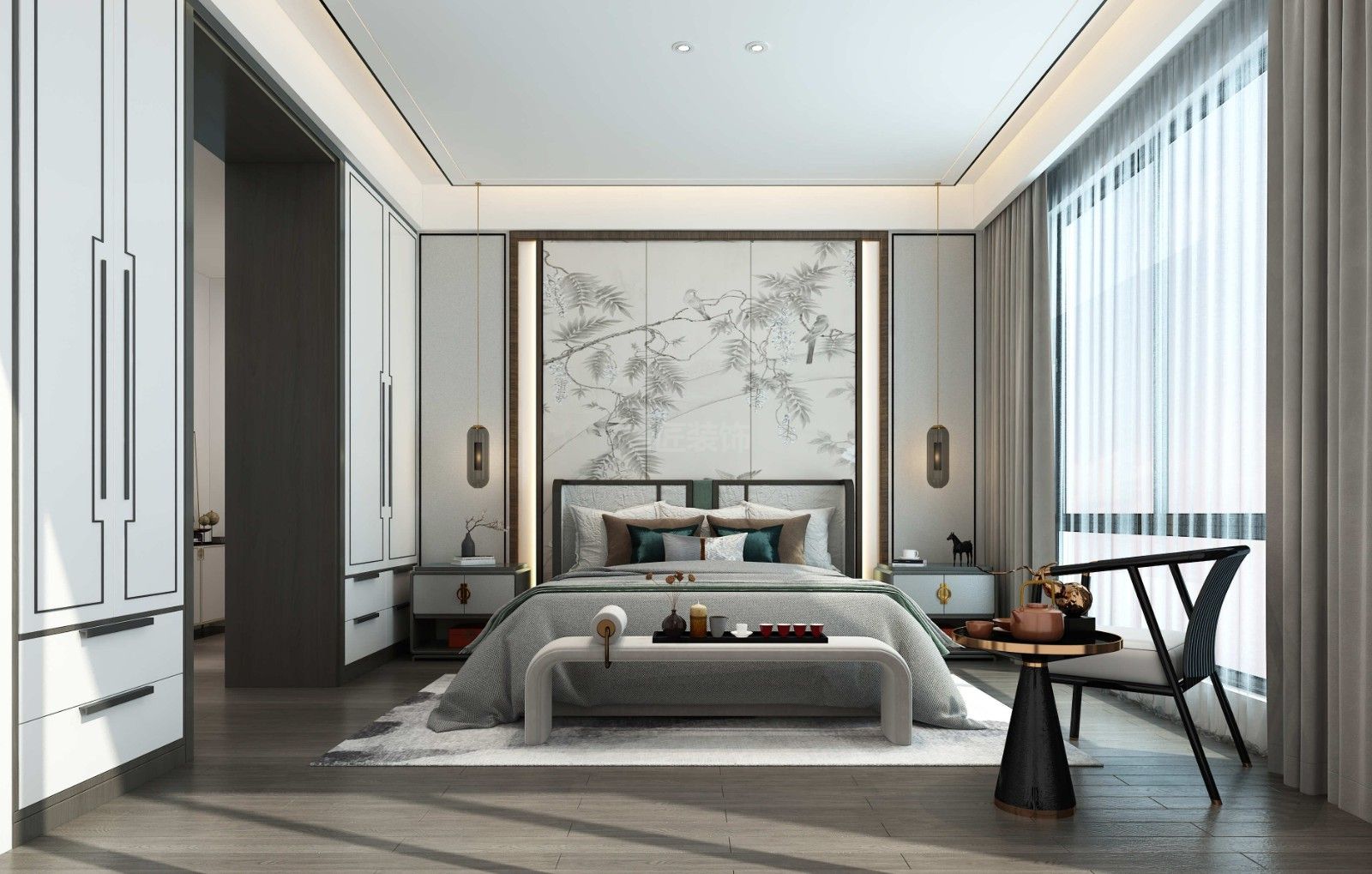 ??陂L怡花園別墅新中式風(fēng)格裝修效果圖
