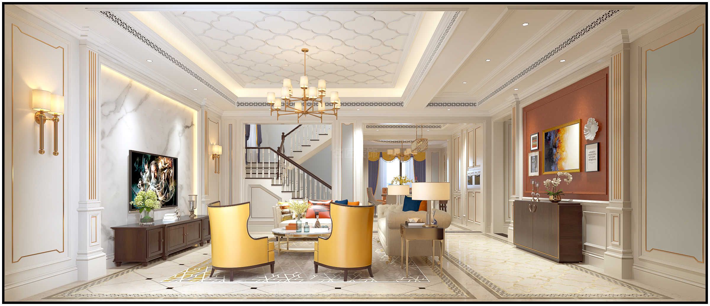 淮安開源瓏城別墅美式風格裝修效果圖