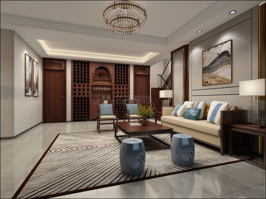 海口國瑞江畔花園別墅新中式風(fēng)格裝修效果圖