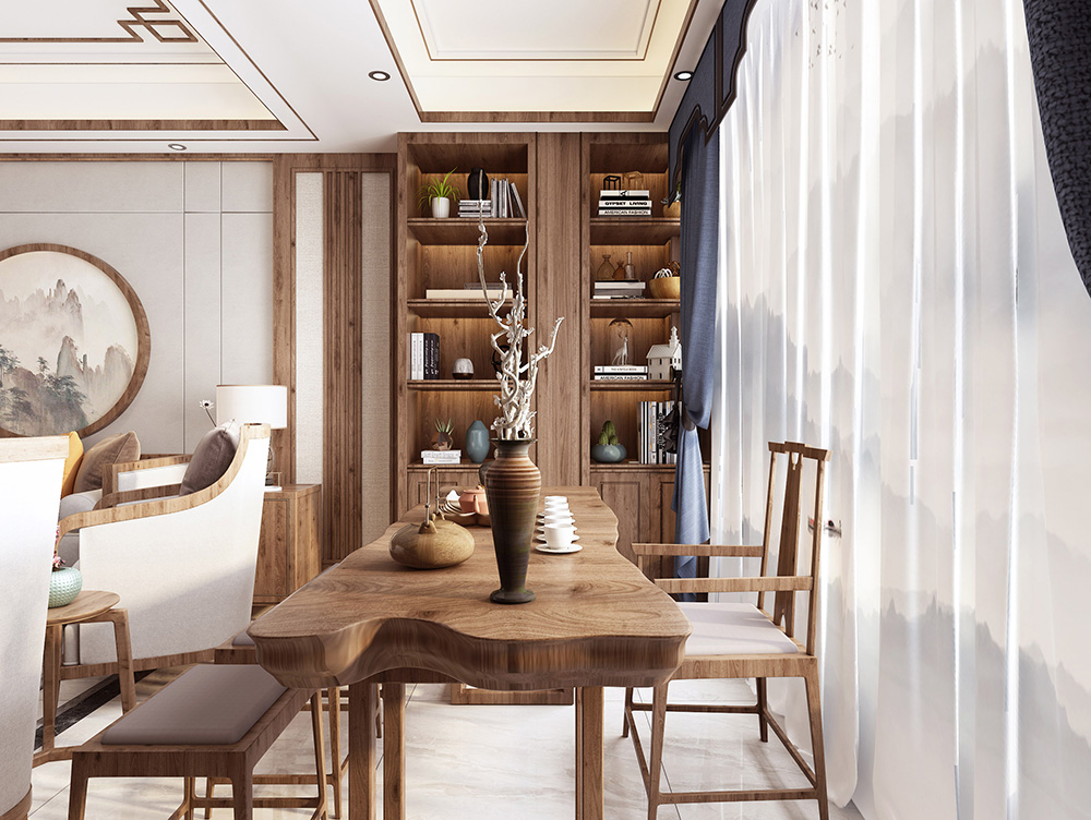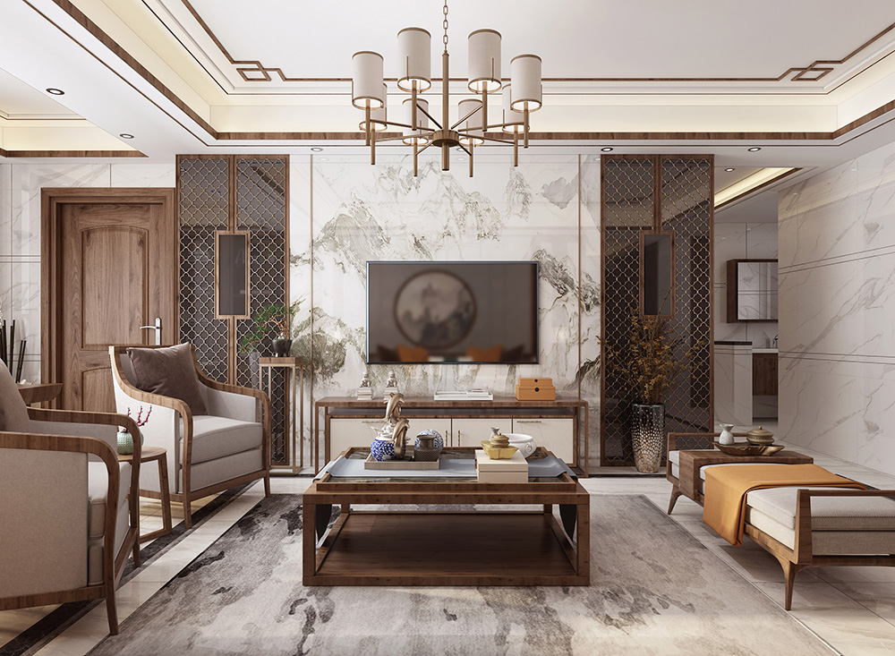 梅州奧園天韻灣四居新中式風格裝修效果圖